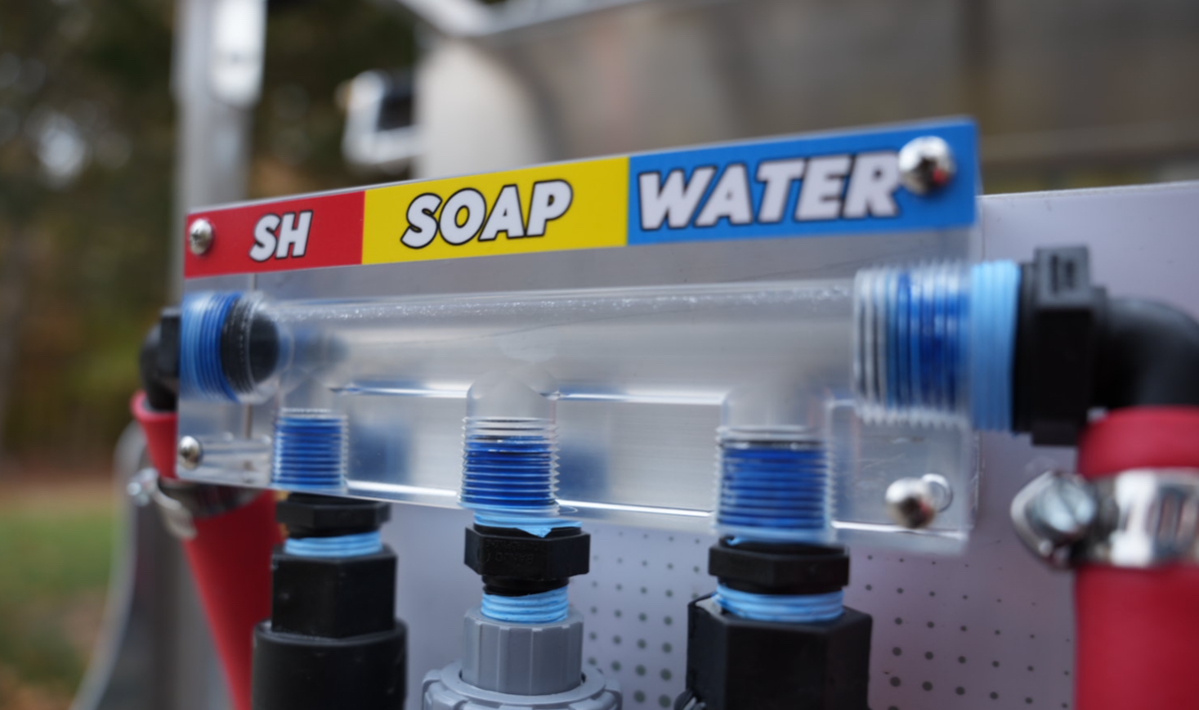 • 5-port clear manifold for soft wash metering systems